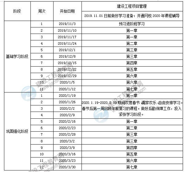 2020年一級建造師考試備考預(yù)習(xí)計(jì)劃表-項(xiàng)目管理篇