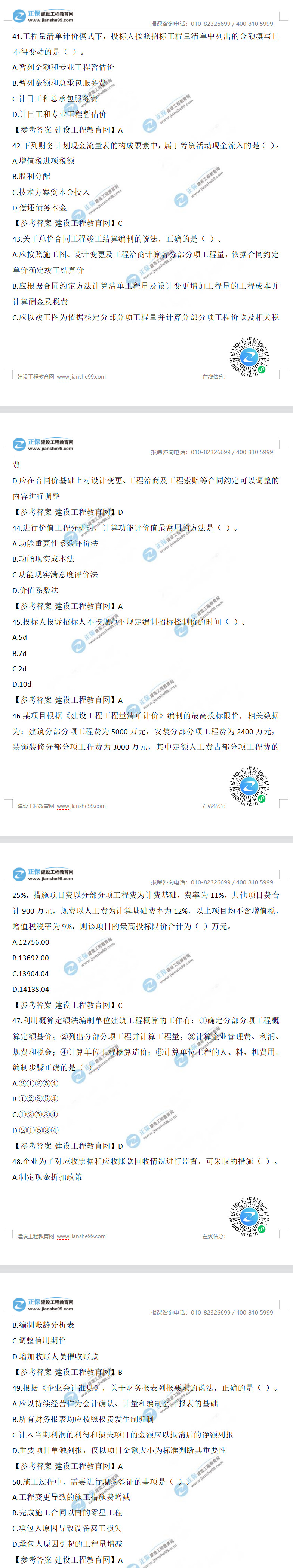 2023年一級(jí)建造師工程經(jīng)濟(jì)真題及答案解析41-50題