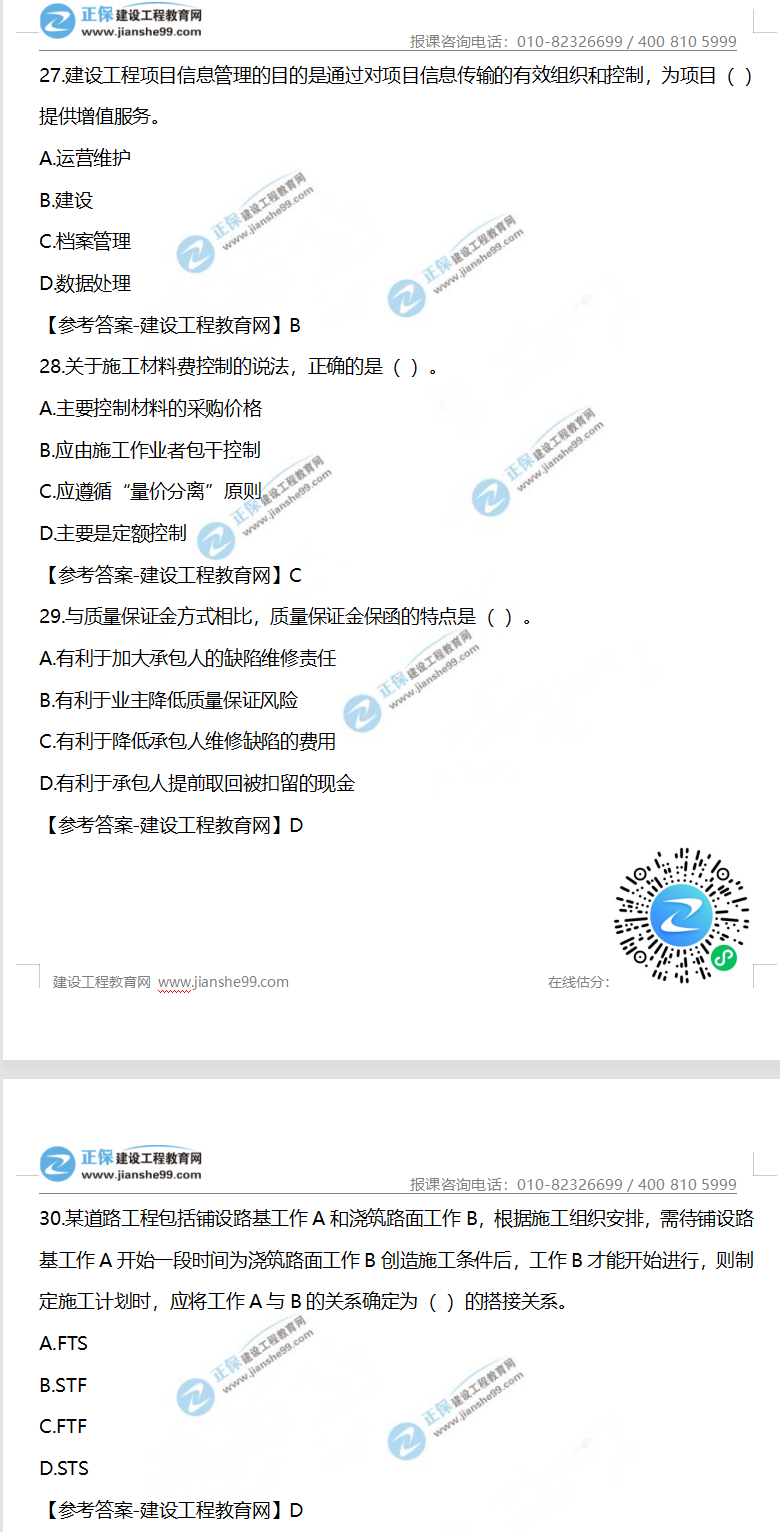 2023年一級(jí)建造師項(xiàng)目管理真題及答案解析21-30題。建設(shè)工程教育網(wǎng)考后將會(huì)根據(jù)學(xué)員反饋,及時(shí)匯總一級(jí)建造師項(xiàng)目管理真題分享給大家,并且會(huì)及時(shí)做出答案解析,希望能為廣大一建考生朋友帶來幫助。