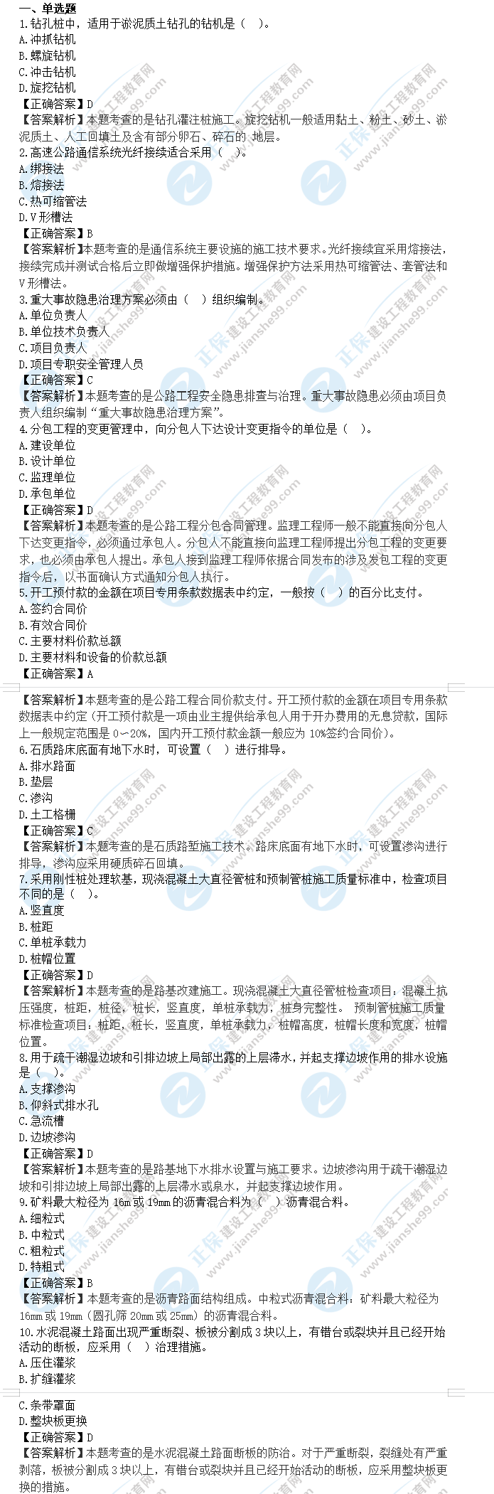 2023年一級建造師公路工程真題及答案解析選擇題。建設(shè)工程教育網(wǎng)考后將會根據(jù)學(xué)員反饋,及時匯總一級建造師公路工程真題分享給大家,并且會及時做出答案解析,希望能為廣大一建考生朋友帶來幫助。