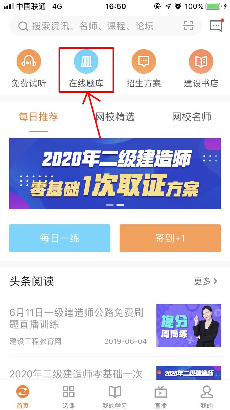 第一步 打開(kāi)建設(shè)工程教育APP 選擇在線(xiàn)題庫(kù)