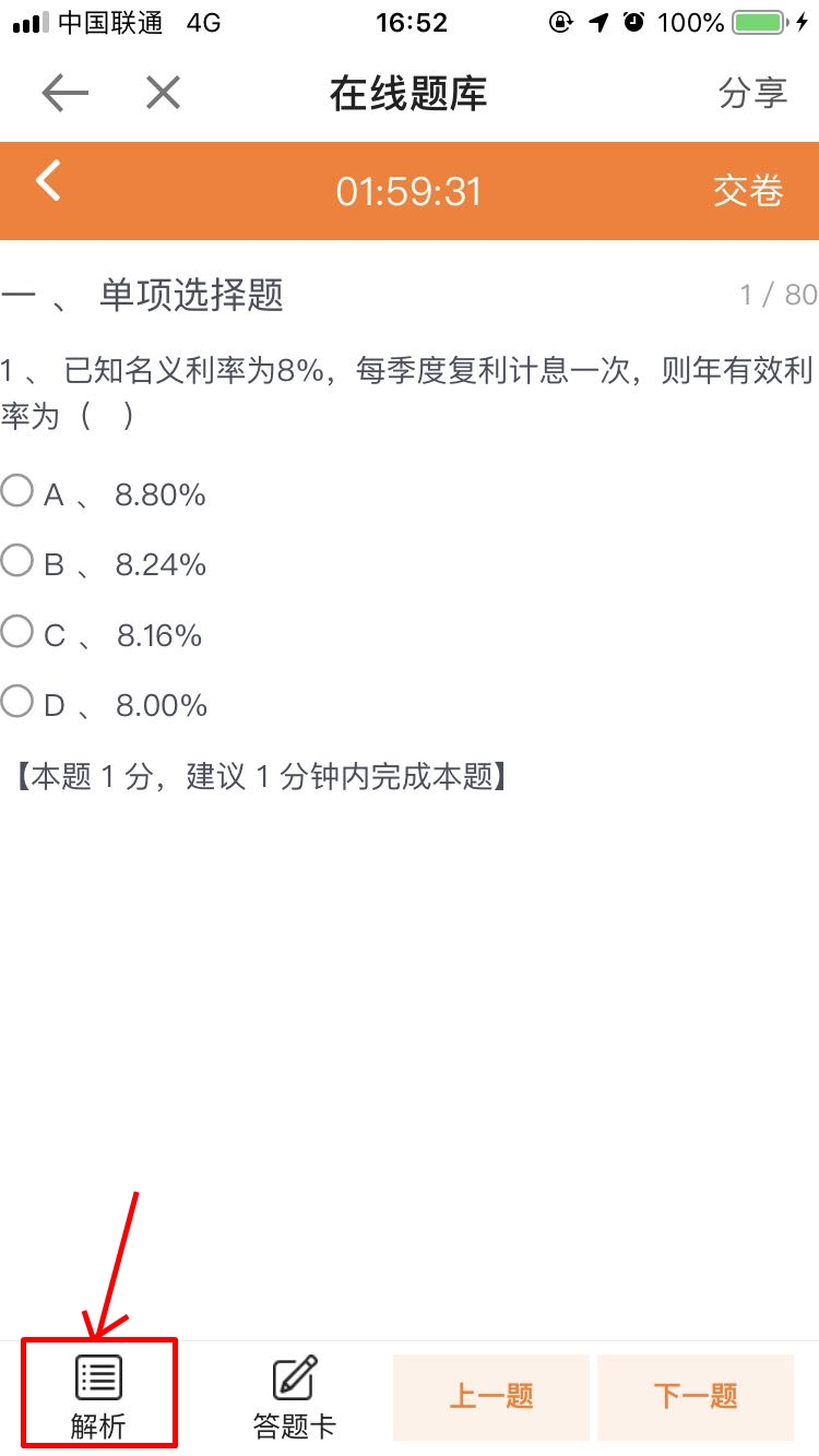 第三步 開(kāi)始做題自測(cè) 左下角可觀看解析