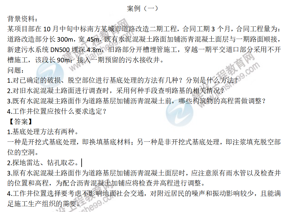 2022年一級(jí)建造師考試市政工程試題及答案解析案例一