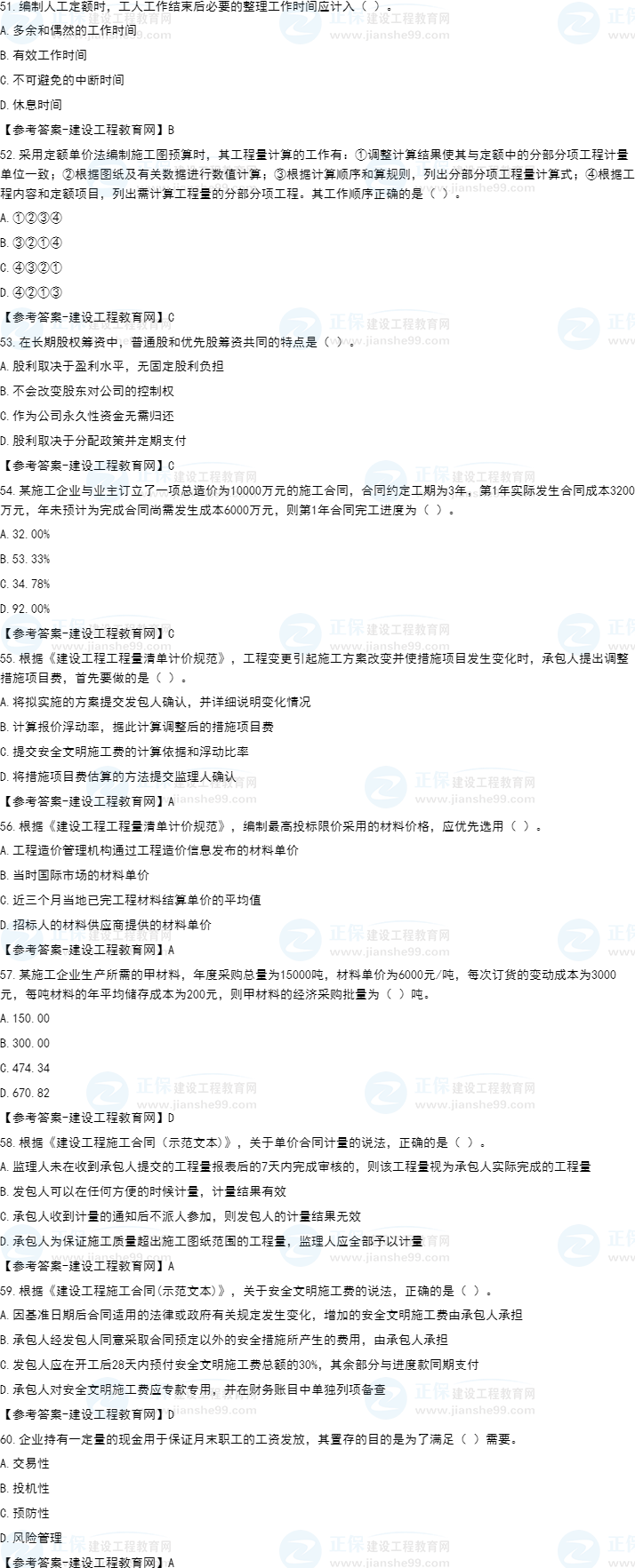 2022年一級建造師工程經(jīng)濟補考試題及答案51-60題。建設(shè)工程教育網(wǎng)考后將會根據(jù)學(xué)員反饋,及時匯總2022年一級建造師工程經(jīng)濟補考試題及答案分享給大家,并且會及時做出答案解析,希望能為廣大一建考生朋友帶來幫助。