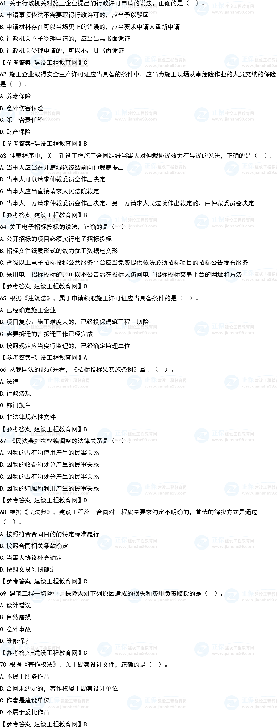 2022年一級建造師補考工程法規(guī)試題及答案61-70題。建設工程教育網(wǎng)考后將會根據(jù)學員反饋,及時匯總2022年一級建造師工程法規(guī)補考試題及答案分享給大家,并且會及時做出答案解析,希望能為廣大一建考生朋友帶來幫助。