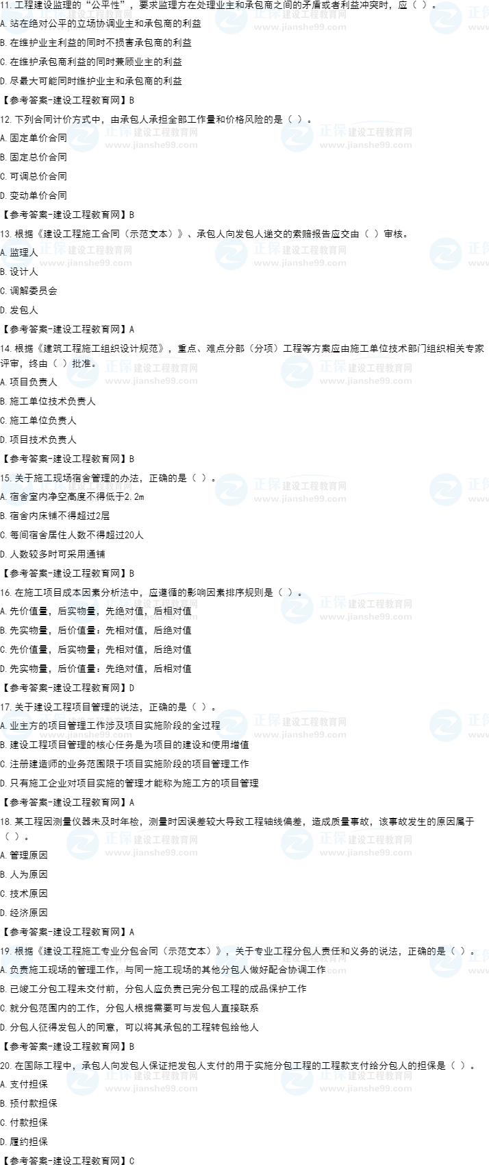 2022年一級建造師補考項目管理試題及答案11-20題。建設工程教育網(wǎng)考后將會根據(jù)學員反饋,及時匯總2022年一級建造師補考項目管理試題及答案分享給大家,并且會及時做出答案解析,希望能為廣大一建考生朋友帶來幫助。