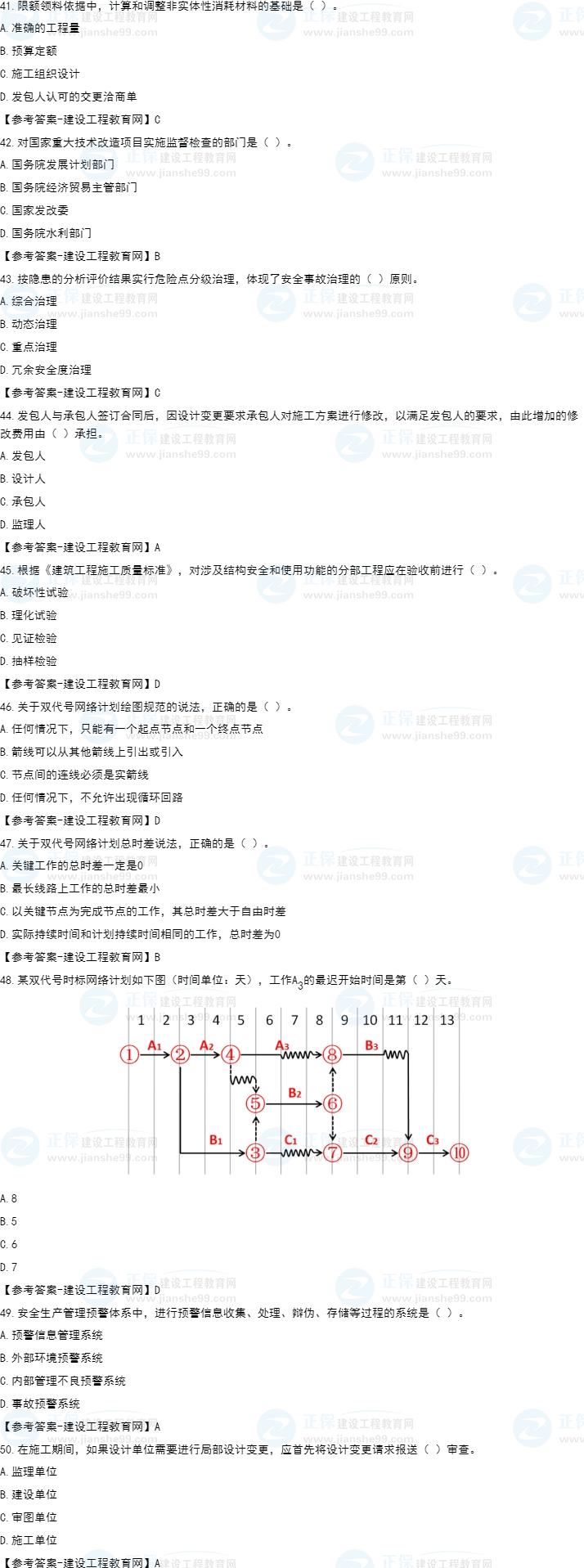 2022年一級建造師補考項目管理試題及答案41-50題。建設工程教育網考后將會根據(jù)學員反饋,及時匯總2022年一級建造師補考項目管理試題及答案分享給大家,并且會及時做出答案解析,希望能為廣大一建考生朋友帶來幫助。