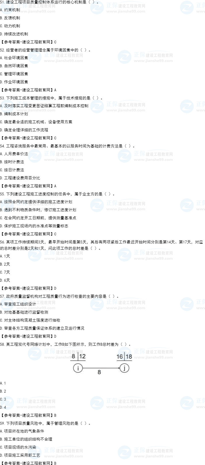 2022年一級(jí)建造師考試(補(bǔ)考)項(xiàng)目管理試題及答案解析51-60題