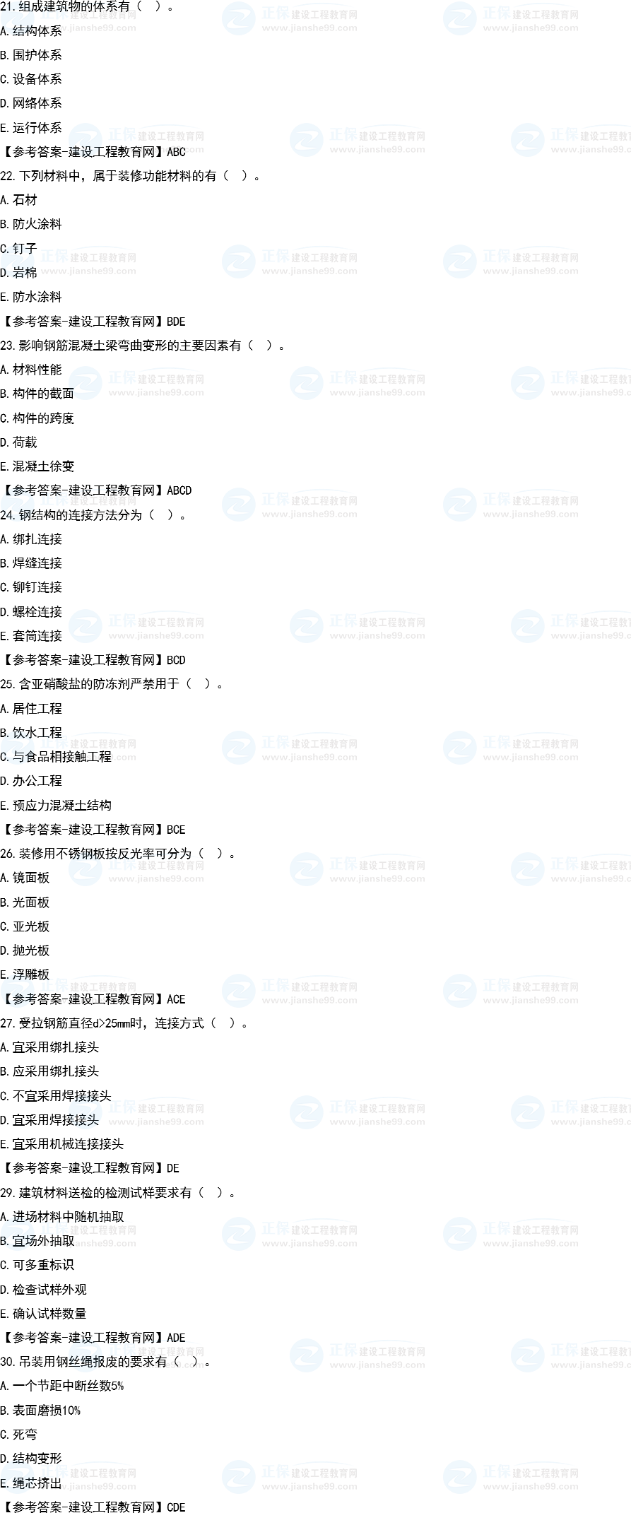 【建筑試題1-10】【建筑試題11-20】【建筑試題21-30】【建筑試題案例一】