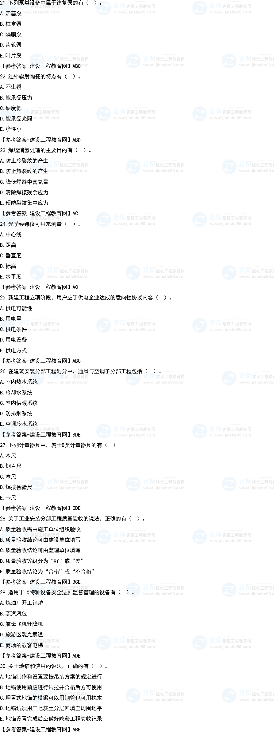 2022年一級(jí)建造師考試(補(bǔ)考)機(jī)電工程試題及答案解析21-30題