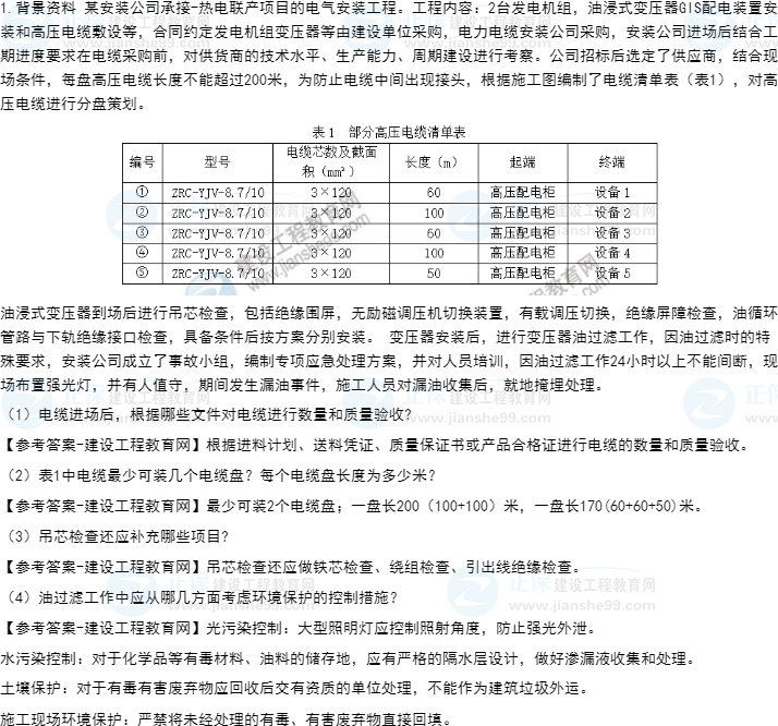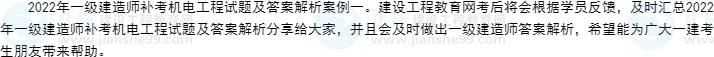 2022年一級建造師考試(補(bǔ)考)機(jī)電工程試題及答案解析案例一