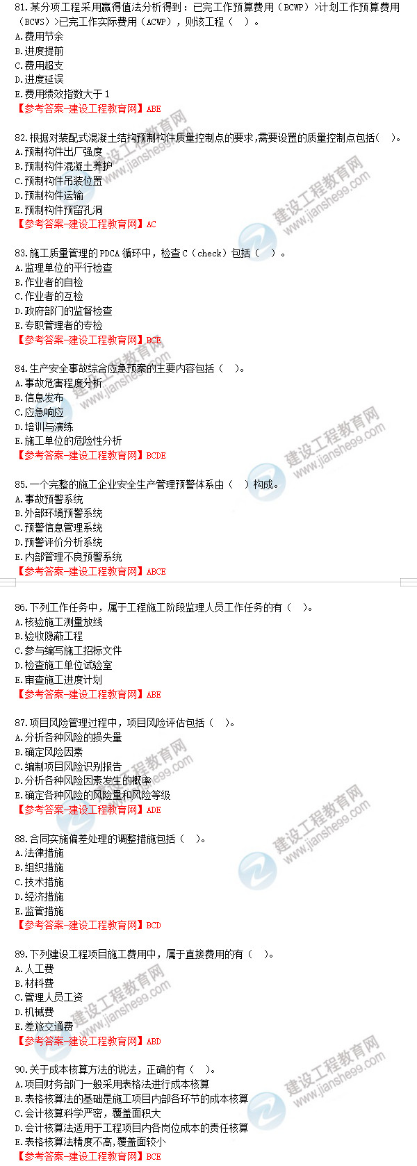 2019年一級(jí)建造師《建設(shè)工程項(xiàng)目管理》試題答案及解析81-90