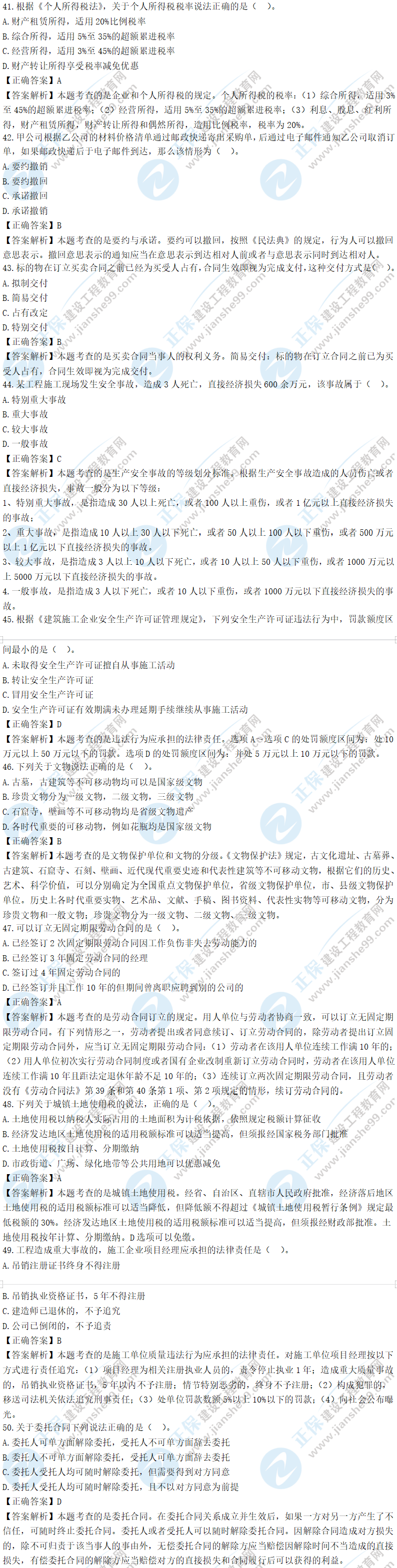 2022年一級(jí)建造師工程法規(guī)試題及答案41-50題,建設(shè)工程教育網(wǎng)考后將會(huì)根據(jù)學(xué)員反饋,及時(shí)匯總2022年一級(jí)建造師工程法規(guī)試題及答案分享給大家,并且會(huì)及時(shí)做出答案解析,希望能為廣大一建考生朋友帶來幫助。
