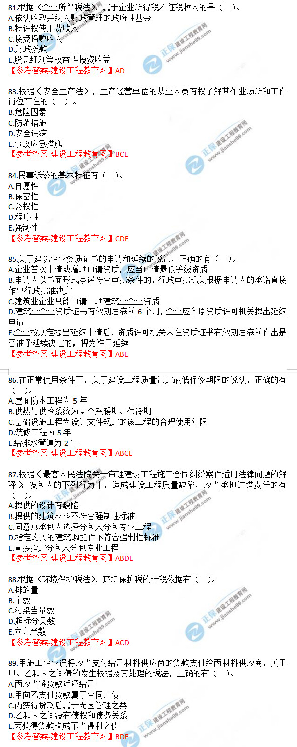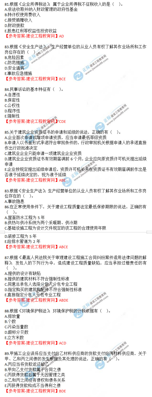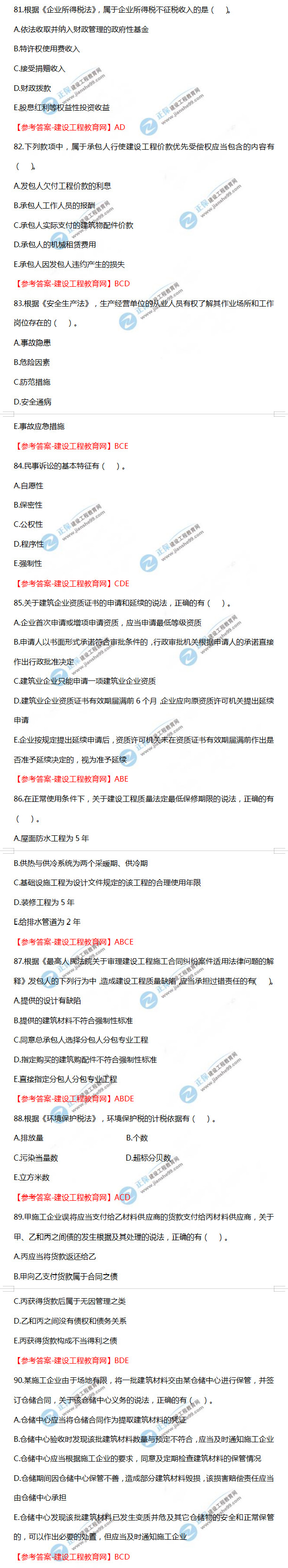 2019年一級(jí)建造師《建設(shè)工程法規(guī)及相關(guān)知識(shí)》試題答案及解析81-90