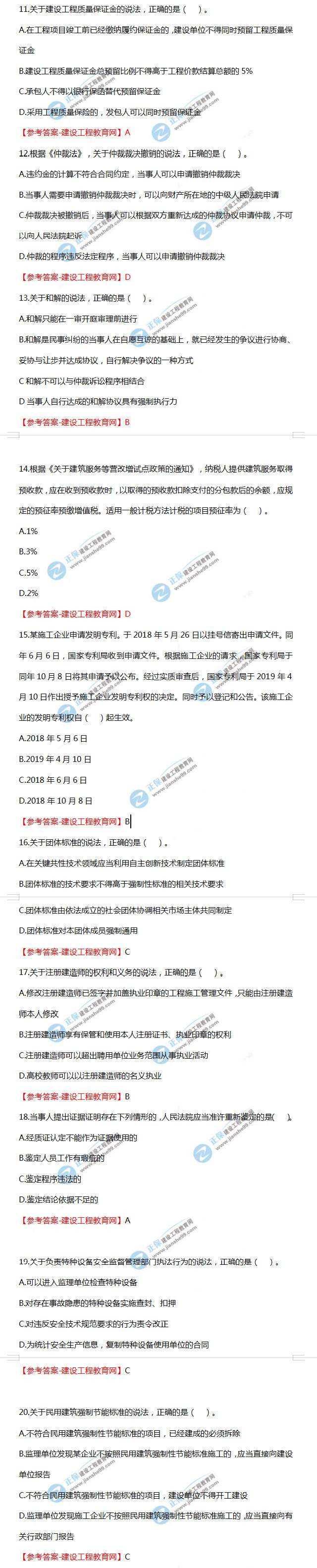 以上就是為大家分享的2019年一級(jí)建造師考試《建設(shè)工程法規(guī)及相關(guān)知識(shí)》試題及答案解析,建設(shè)工程教育網(wǎng)將持續(xù)關(guān)注2020年一級(jí)建造師考試的相關(guān)信息。更多2020年一級(jí)建造師考試內(nèi)容,盡在建設(shè)工程教育網(wǎng)一級(jí)建造師欄目!