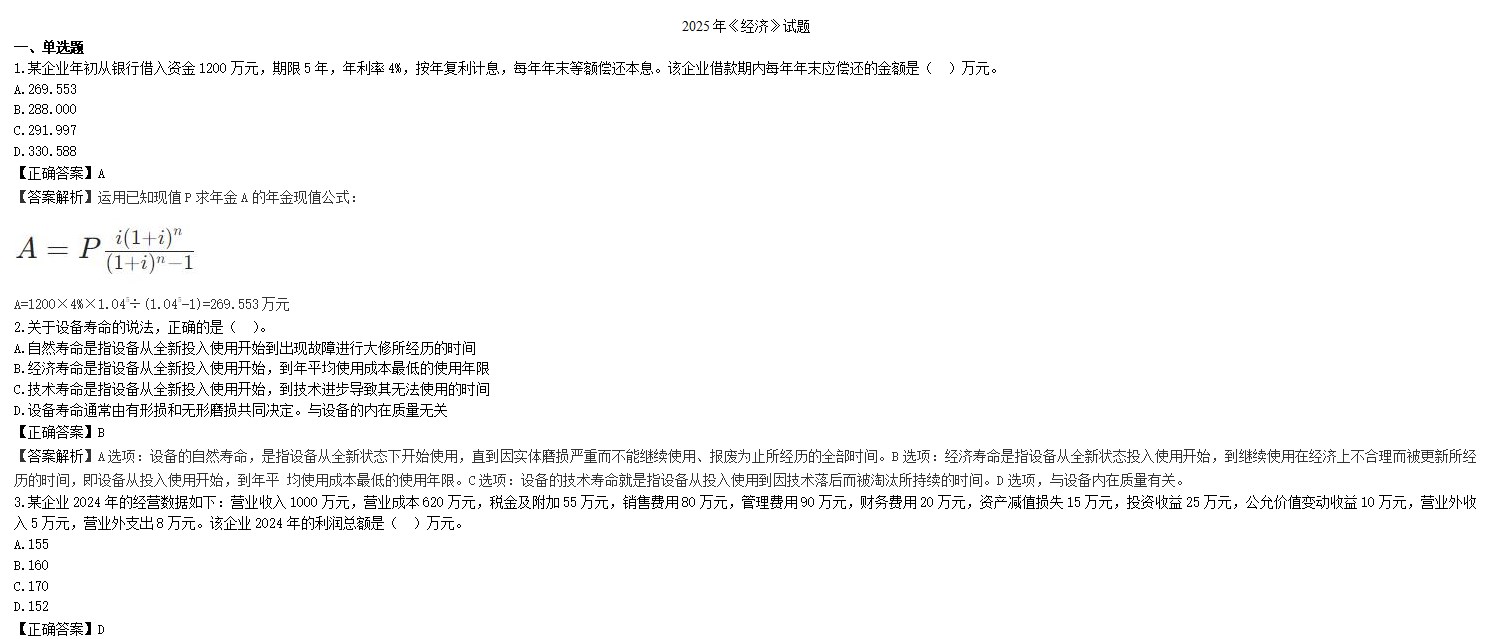 2025年一級(jí)建造師考試《工程經(jīng)濟(jì)》試題及答案