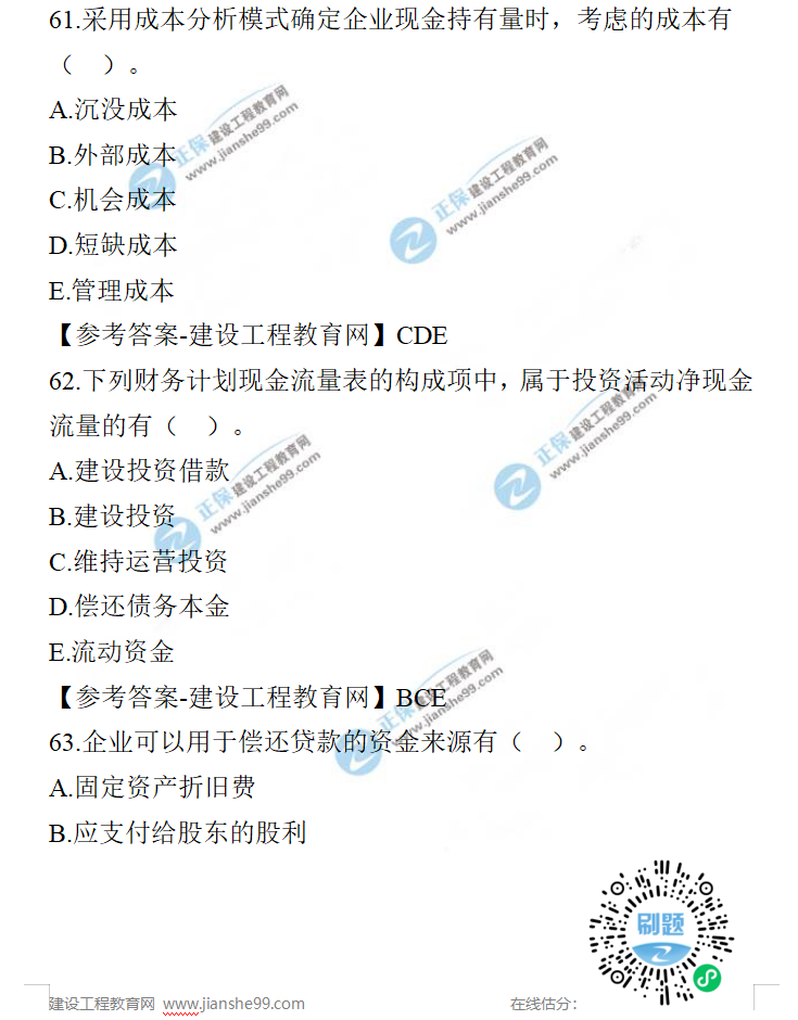2021年一級建造師工程經(jīng)濟試題及答案61-70題