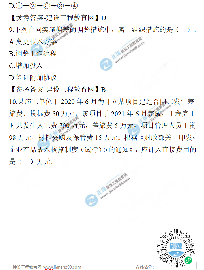 2021年一級(jí)建造師項(xiàng)目管理試題及答案1-10題