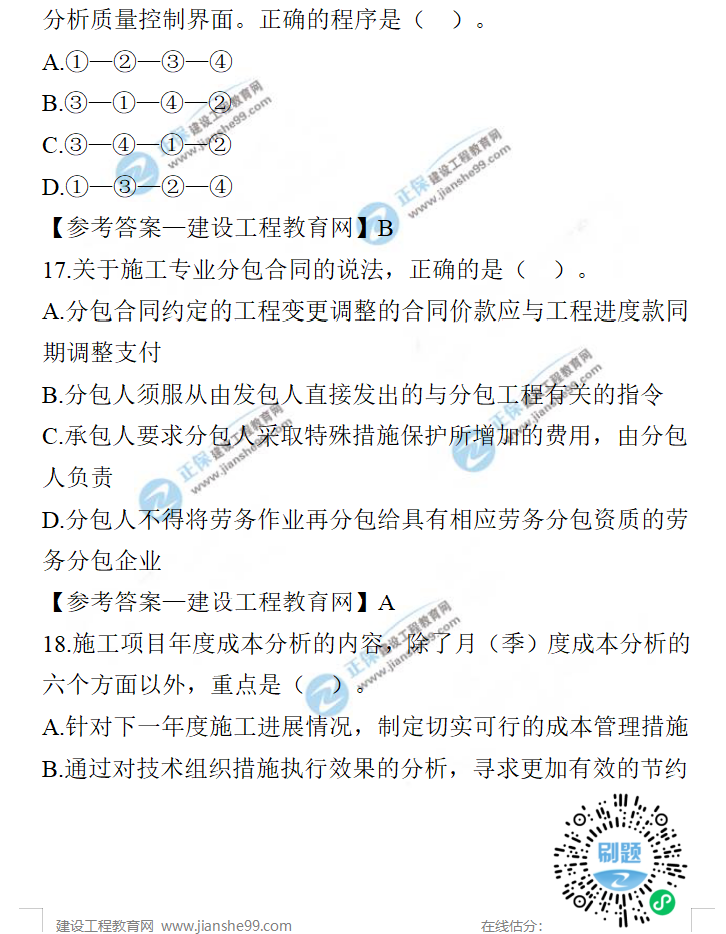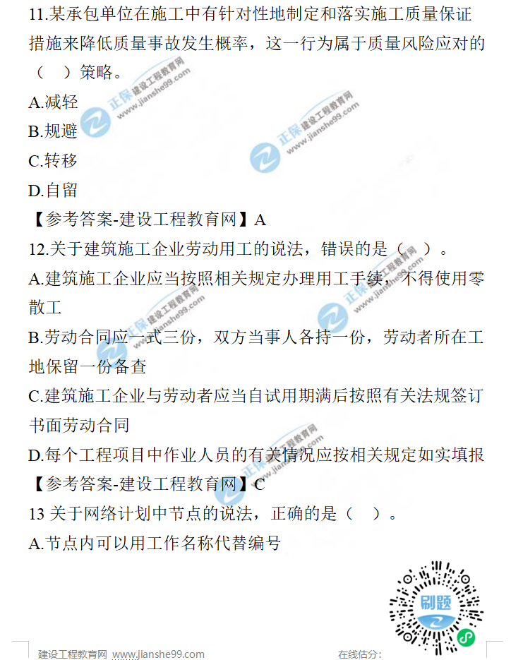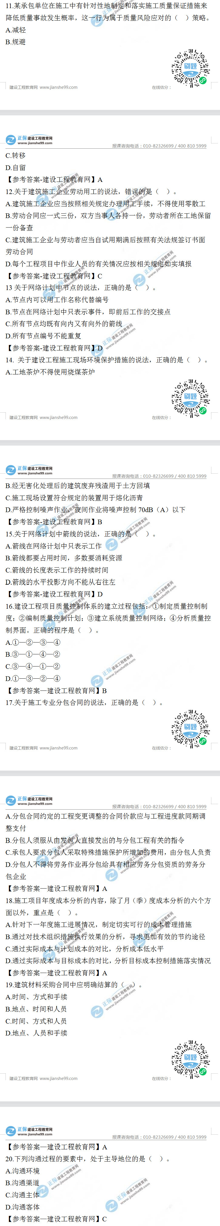 2021年一級建造師項目管理試題及答案11-20題,建設(shè)工程教育網(wǎng)考后將會根據(jù)學(xué)員反饋,及時匯總2021年一級建造師項目管理試題及答案分享給大家,并且會及時做出答案解析,希望能為廣大一建考生朋友帶來幫助。