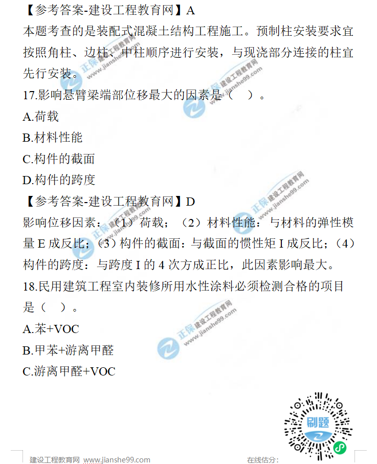 2021年一級建造師建筑工程試題及答案解析11-20題,建設(shè)工程教育網(wǎng)考后將會根據(jù)學(xué)員反饋,及時(shí)匯總2021年一級建造師建筑工程試題及答案解析分享給大家,并且會及時(shí)做出一級建造師答案解析,希望能為廣大一建考生朋友帶來幫助。