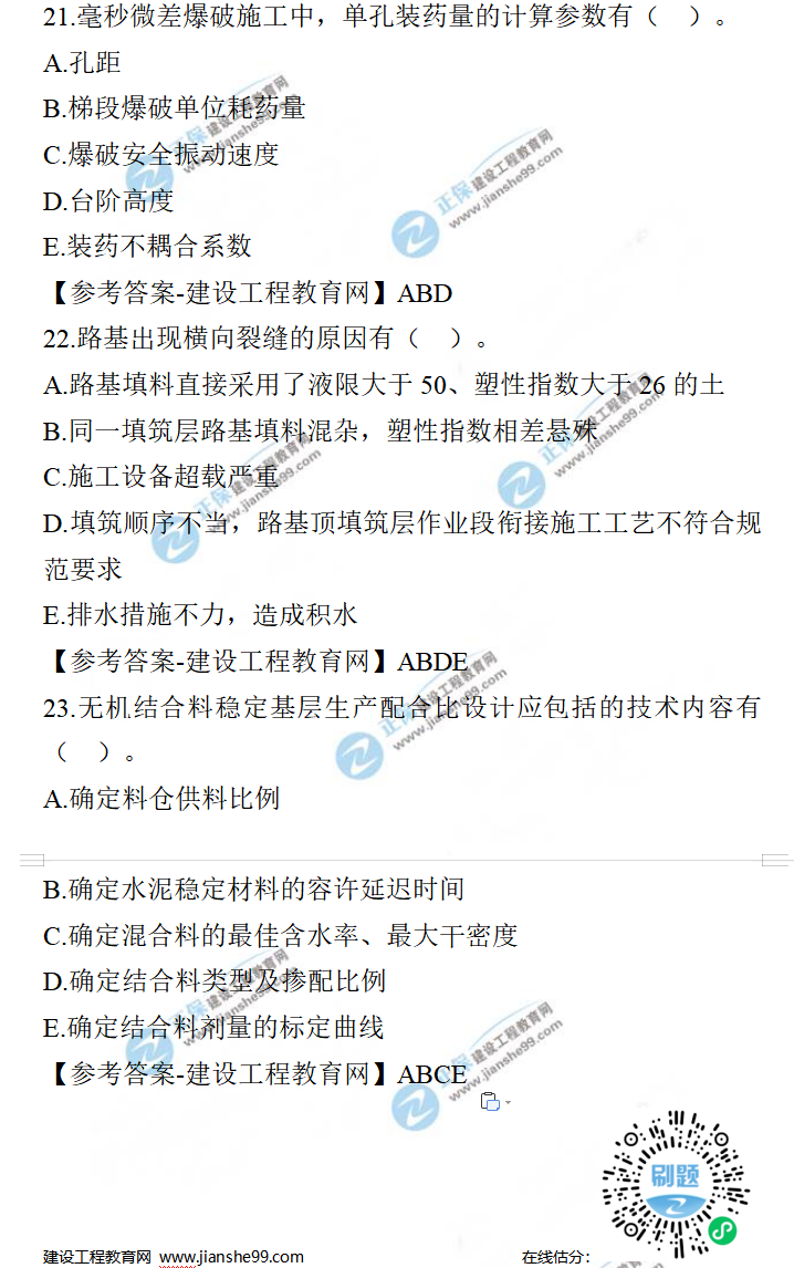 2021年一級(jí)建造師公路工程試題及答案解析21-30題,建設(shè)工程教育網(wǎng)考后將會(huì)根據(jù)學(xué)員反饋,及時(shí)匯總2021年一級(jí)建造師公路工程試題及答案解析分享給大家,并且會(huì)及時(shí)做出一級(jí)建造師答案解析,希望能為廣大一建考生朋友帶來幫助。
