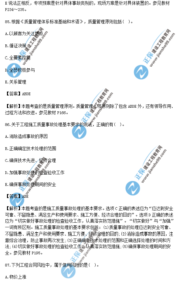 2018年一級建造師《項目管理》試題答案及解析(81-90),由考生回憶題干,建設(shè)工程教育網(wǎng)一級建造師考試教研組團提供參考答案,供廣大考生進行參考!點擊查看2019年一級建造師招生方案>>