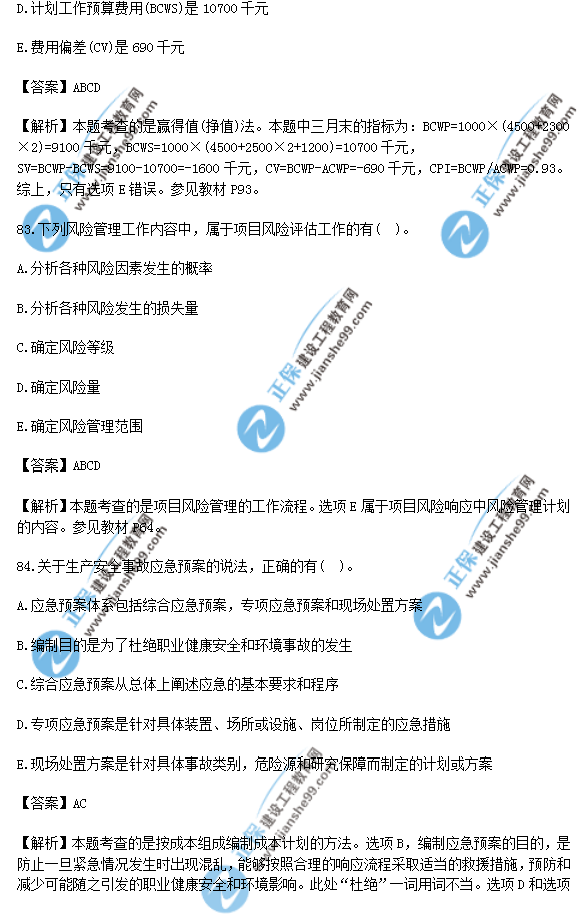 2018年一級建造師《項目管理》試題答案及解析(81-90)
