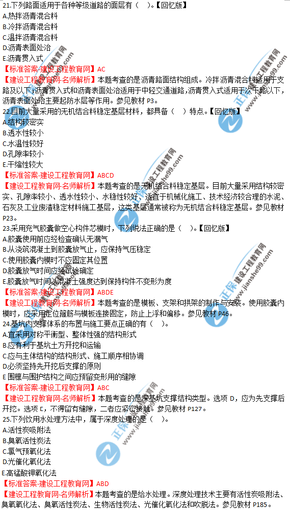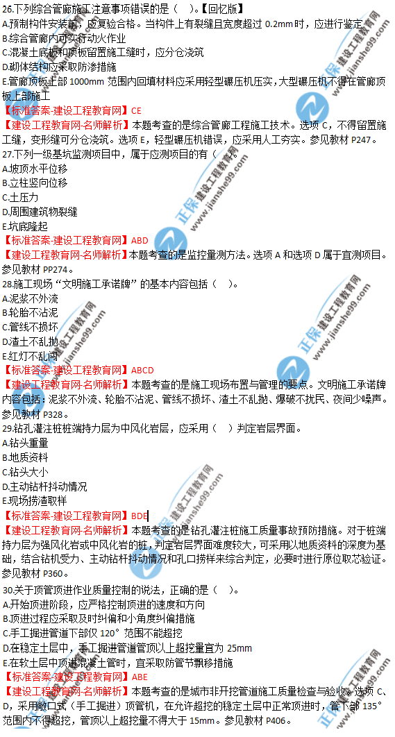 2018年一級建造師《市政實(shí)務(wù)》試題及答案解析(21-30),由考生回憶題干,建設(shè)工程教育網(wǎng)一級建造師考試教研組團(tuán)提供參考答案,供廣大考生進(jìn)行參考!點(diǎn)擊查看2019年一級建造師招生方案>>
