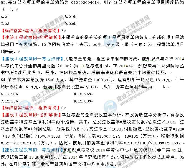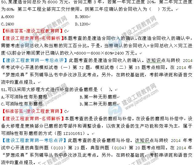 2014一級(jí)建造師工程經(jīng)濟(jì)答案及解析由老師整理而成,部分網(wǎng)站未經(jīng)許可擅自轉(zhuǎn)載、抄襲,造成內(nèi)容有所缺失或錯(cuò)誤,請(qǐng)大家以建設(shè)工程教育網(wǎng)發(fā)布為準(zhǔn)!