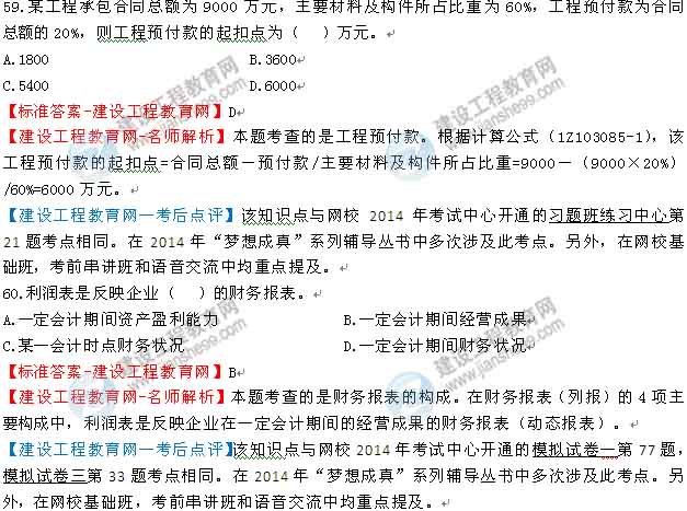 【建設工程教育網—考后點評】該知識點與網校2014年考試中心開通的模擬試卷一第10題,模擬試卷二第11題考點相同。在2014年“夢想成真”系列輔導叢書中多次涉及此考點。另外,在網?;A班,考前串講班和語音交流中均重點提及。