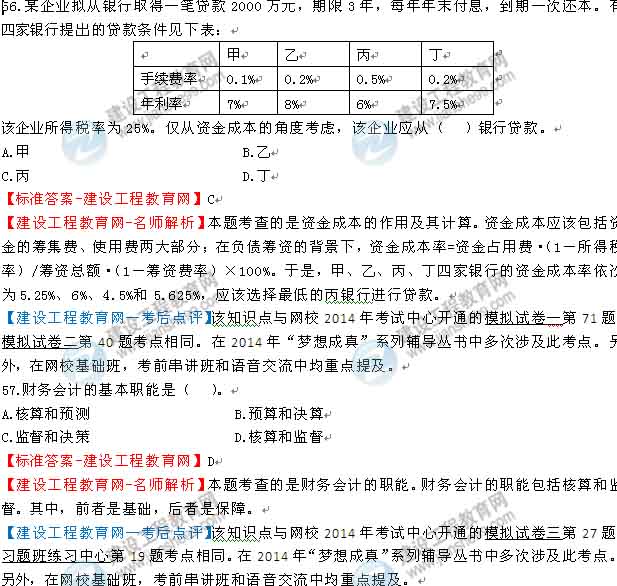 2014一級建造師《工程經濟》考生試題及答案第56-61題,更多試題及答案在網頁下方