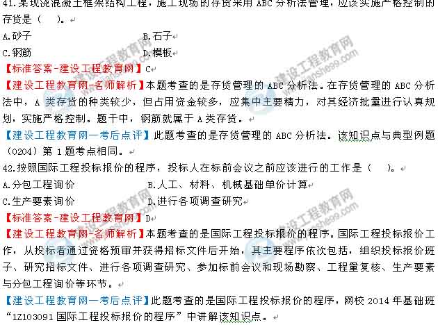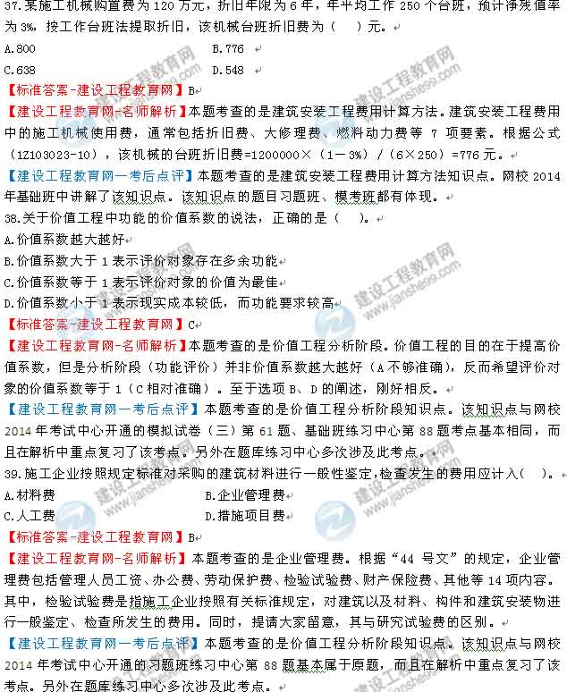 2014一級建造師工程經(jīng)濟答案及解析由老師整理而成,部分網(wǎng)站未經(jīng)許可擅自轉載、抄襲,造成內(nèi)容有所缺失或錯誤,請大家以建設工程教育網(wǎng)發(fā)布為準!