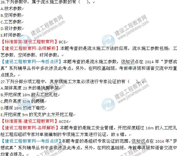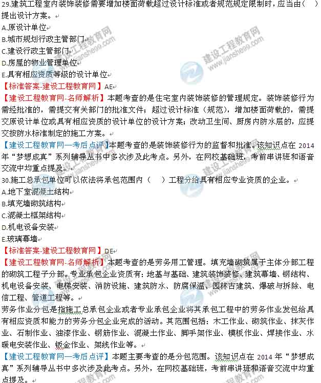 【老師解析】2014年一級(jí)建造師建筑管理與實(shí)務(wù)試題及答案(26-30)