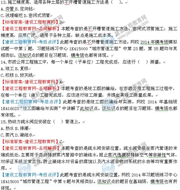 2014一級(jí)建造師市政工程實(shí)務(wù)考生試題及答案第12-15題,更多試題及答案在網(wǎng)頁(yè)