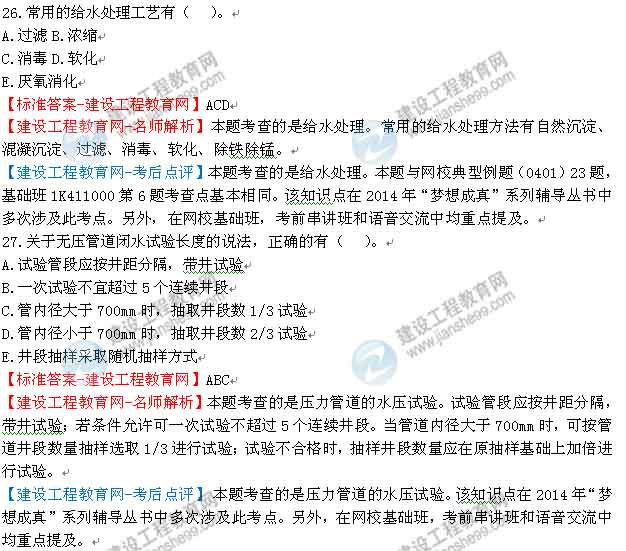 2014一級(jí)建造師市政工程實(shí)務(wù)考生試題及答案第26-30題,更多試題及答案在網(wǎng)頁下方