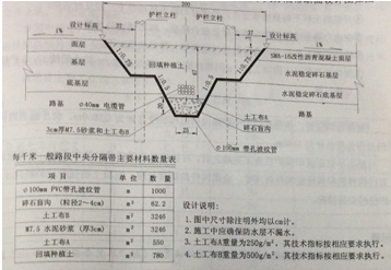 施工單位承接了一新建高速公路K50+000~K75+000段路面工程與交通工程的施工,其中包含中央分隔帶及路面排水工程。一般路段中央分隔帶斷面設計圖如圖4:
