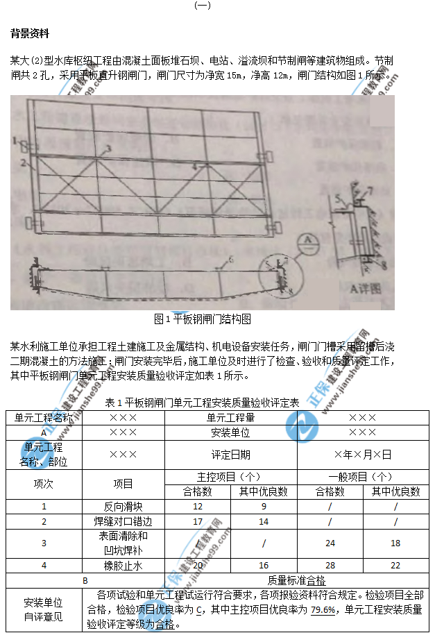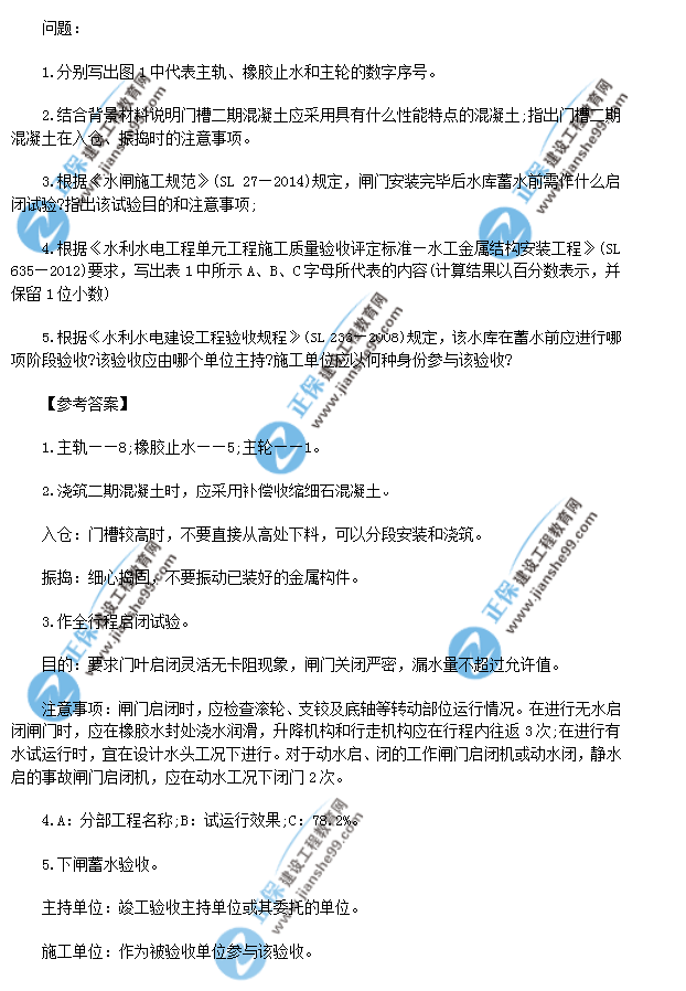 2018年一級(jí)建造師《水利實(shí)務(wù)》試題答案及解析案例一,由考生回憶題干,建設(shè)工程教育網(wǎng)一級(jí)建造師考試教研組團(tuán)提供參考答案,供廣大考生進(jìn)行參考!點(diǎn)擊查看2019年一級(jí)建造師招生方案>>