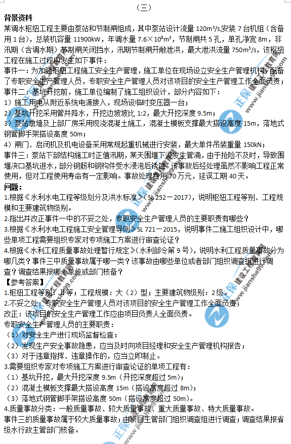 2018年一級建造師《水利實務》試題答案及解析案例三