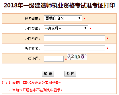 點擊進入2018年西藏一級建造師考試準(zhǔn)考證打印入口》