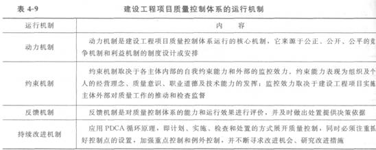 建設(shè)工程項(xiàng)目質(zhì)量控制體系的運(yùn)行機(jī)制見(jiàn)表4-9.