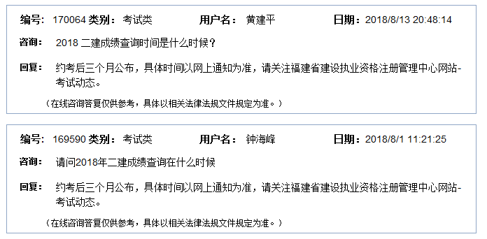 福建官網(wǎng)回復(fù):2018二建成績約考后三個(gè)月公布
