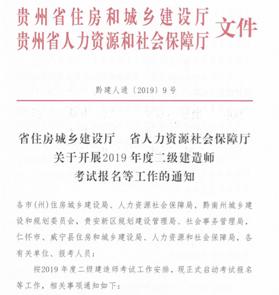 點(diǎn)擊查看考務(wù)文件:貴州關(guān)于開(kāi)展2019年度二級(jí)建造師考試報(bào)名等工作的通知