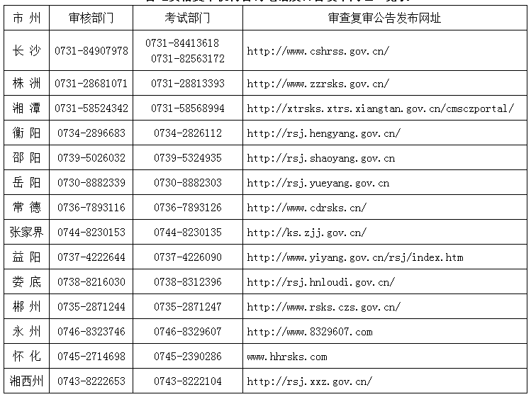 市州要及時(shí)在相關(guān)網(wǎng)站進(jìn)行公示資格復(fù)審結(jié)果,接受舉報(bào)查實(shí);資格審查通過(guò)的人員請(qǐng)關(guān)注“湖南人事考試網(wǎng)()”和市州網(wǎng)站上的證書(shū)發(fā)放公告,按公布的時(shí)間和地點(diǎn)領(lǐng)取資格證書(shū)和相關(guān)表格。