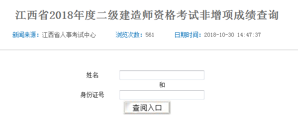 江西二級(jí)建造師成績(jī)查詢官網(wǎng):江西省人事考試中心