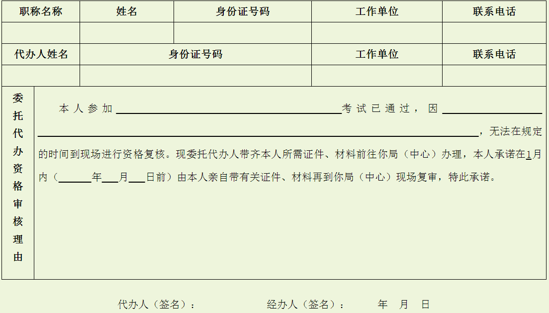 3.考生有效期內(nèi)的居民身份證或軍人證、學(xué)歷(位)證書原件和復(fù)印件各一份。在復(fù)核期限內(nèi),本人因事無法前往須委托他人送審的,要提交代辦委托書(附件4),并在之后一個月內(nèi),再由本人前往送審點送審。