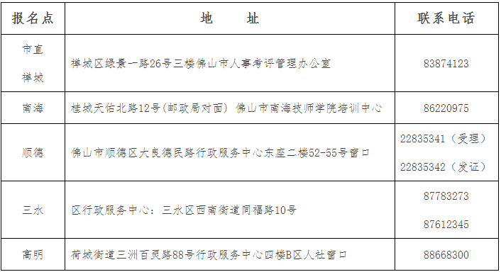 網(wǎng)上報名時選擇“佛山報名點”的考生,請于2016年9月5日至9日(工作日上午8:30-12:00,下午2:00-5:30),自主選擇佛山市人事考評管理辦公室或各區(qū)考試機構(gòu)(詳細(xì)地址及聯(lián)系方式請見附件)提交資料。