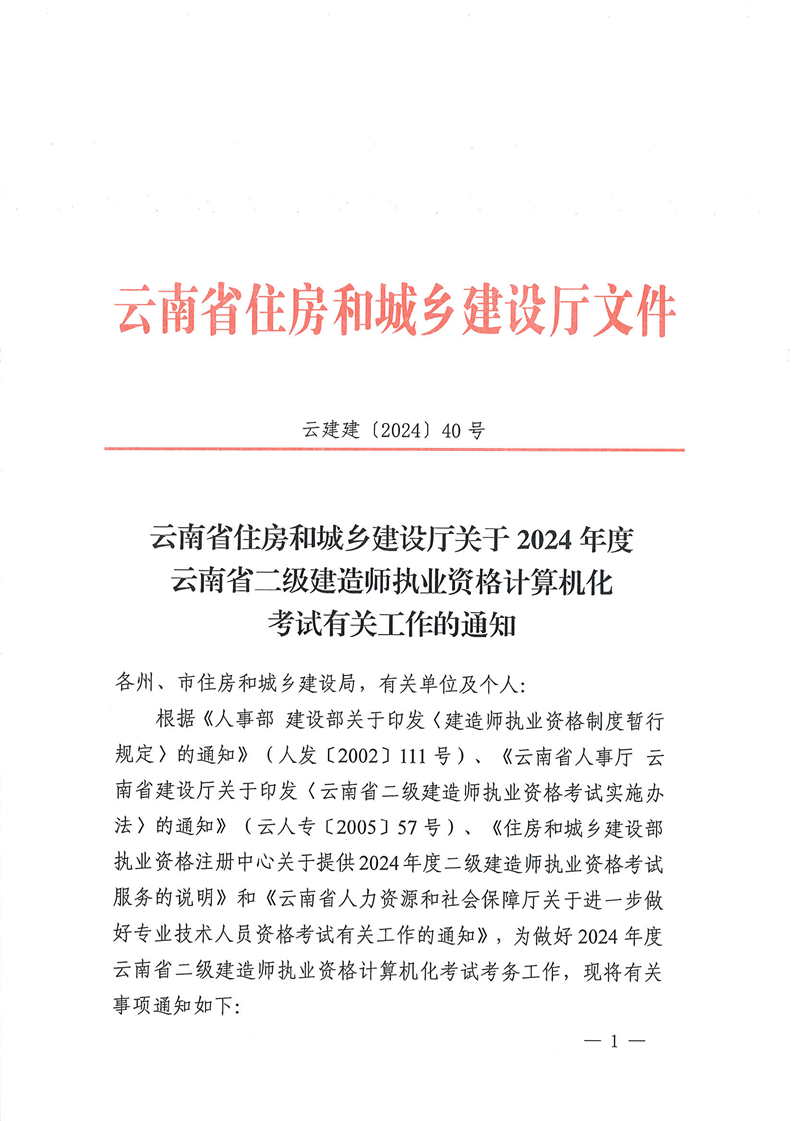 關(guān)于2024年度云南省二級建造師執(zhí)業(yè)資格計(jì)算機(jī)化考試有關(guān)工作的通知