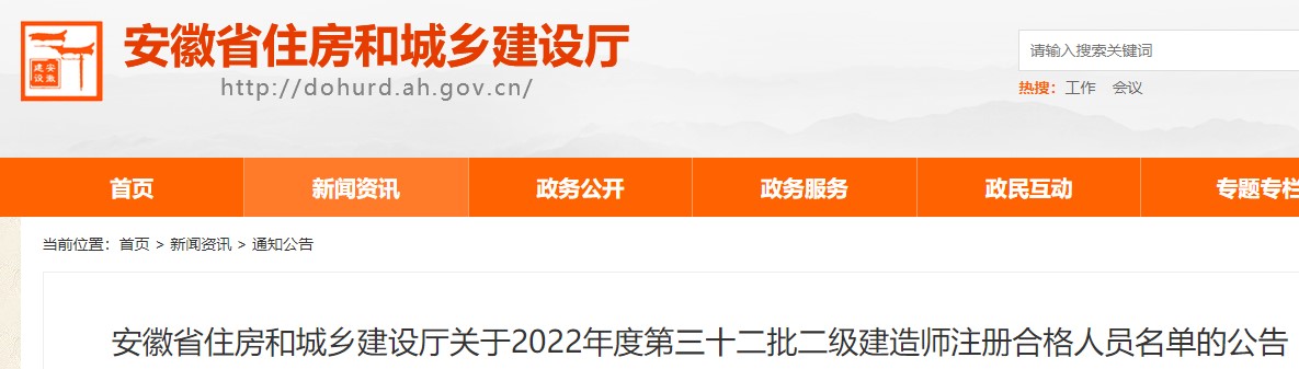 安徽省住房和城鄉(xiāng)建設(shè)廳關(guān)于2022年度第三十二批二級(jí)建造師注冊(cè)合格人員名單的公告