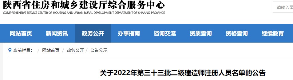 陜西?關(guān)于2022年第三十三批二級建造師注冊人員名單的公告