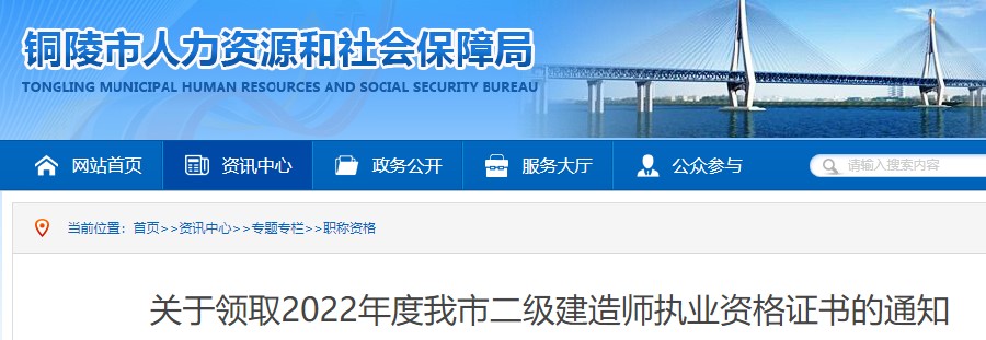 安徽銅陵市?關(guān)于領(lǐng)取2022年度我市二級(jí)建造師執(zhí)業(yè)資格證書(shū)的通知